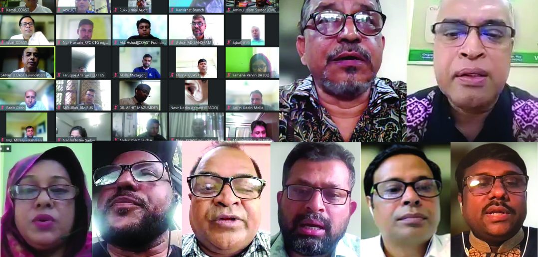 The virtual dialogue, titled “No Matter What – Together we stand beside affected communities – Empower local actors,” was moderated by M Mustafa Kamal Akanda, Director of COAST Foundation. The event’s keynote presentation was delivered by Md. Iqbal Uddin from the same organization. Distinguished participants included Mr. Abu Morshed Chowdhury, Co-Chair of Cox’s Bazar CSO-NGO Forum (CCNF); Mr. Ariful Islam, Chief Executive of YPSA; Ms. Nilima Jahan of Agrajatra; Amir Hossain of NGO Platform; Sheikh Asad of Udayan Bangladesh; Khandakar Faruk Ahmed associated with Trinomul Unnayan Sangtha (TUS) Foundation; and Mujibur Rahman, Advisor of Shushilan. The occasion was inaugurated by Sanat Kumar Bhowmik, Deputy Executive Director of COAST Foundation.